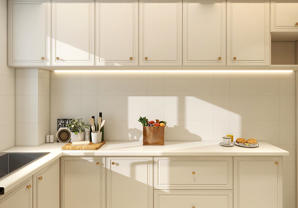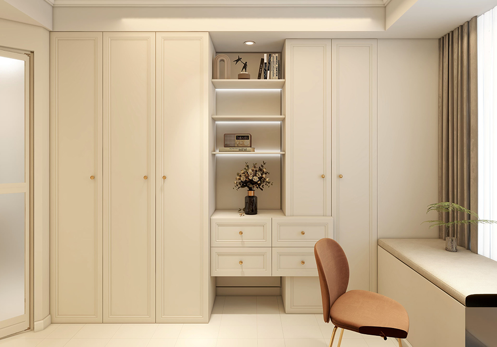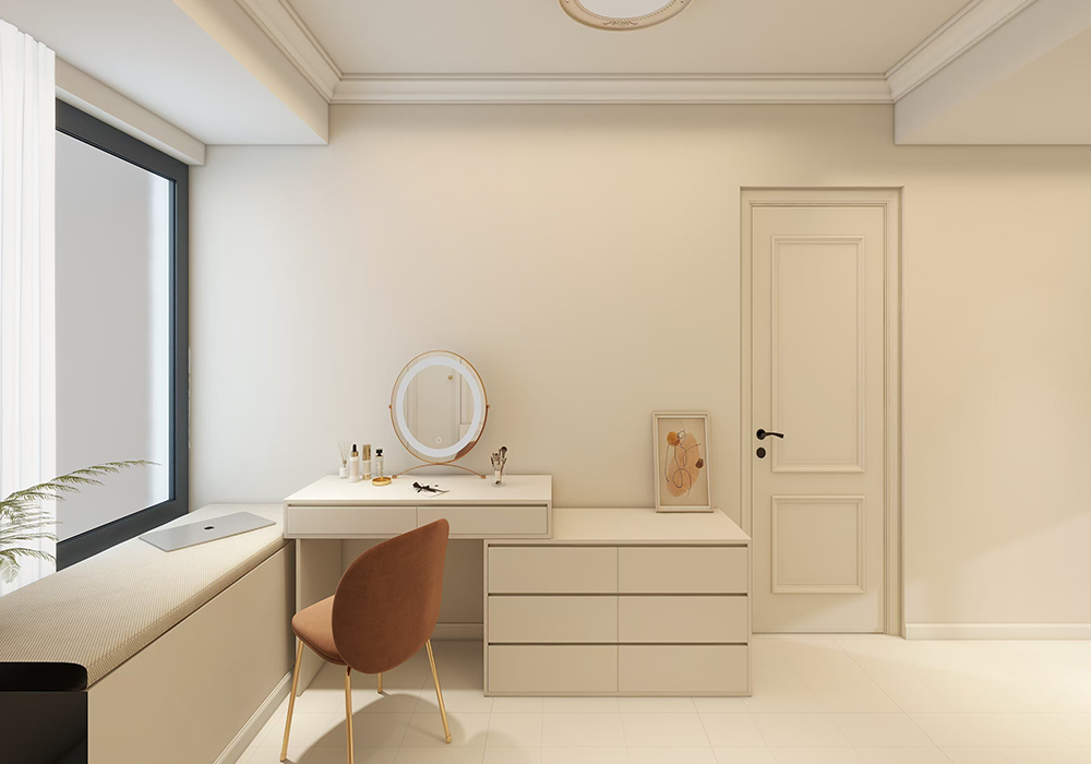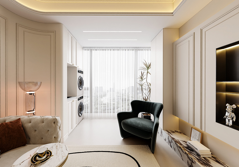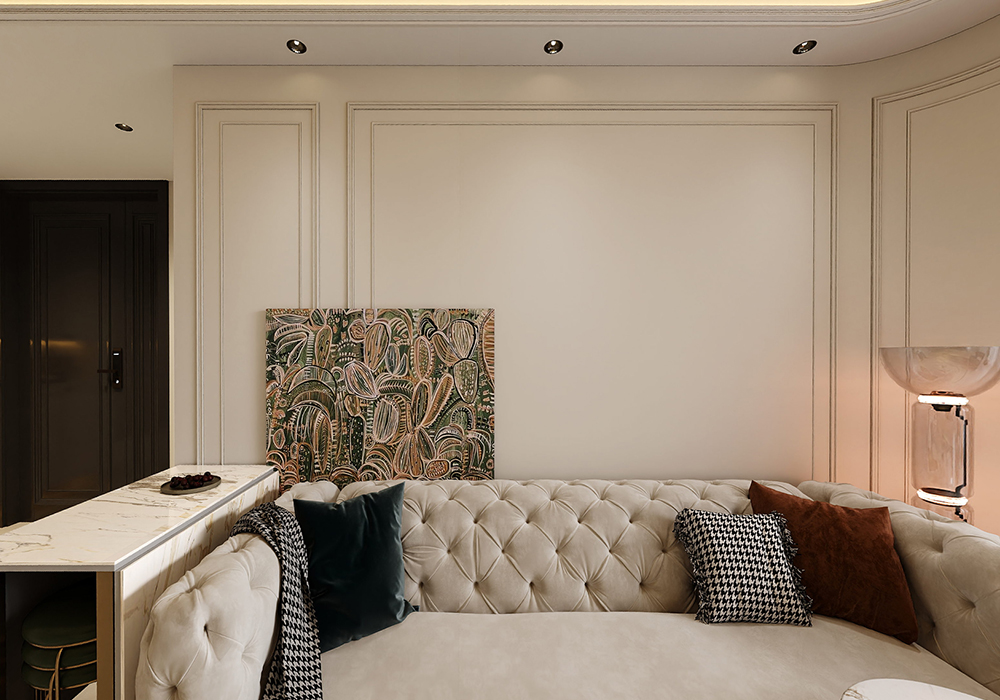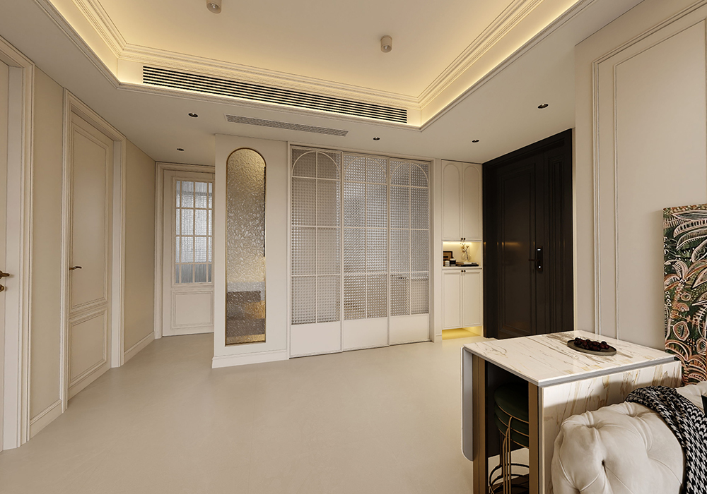 主色调我们还是定的白色为主,我们多在餐厅过道利用餐桌,包括色温要用3500k,其他墙面局部用艺术漆,显示出它应有的质感,家具选择简单线条感的稳住款式来让整个空间奢华同时不失稳重。 解决掉入户鞋柜收纳少问题,利用餐边柜与鞋柜一体弱化客厅柱子更有仪式感,整体白色木饰面结合灯光光碰撞出奢华而不失格调的气息,生活氛围更加温馨。
