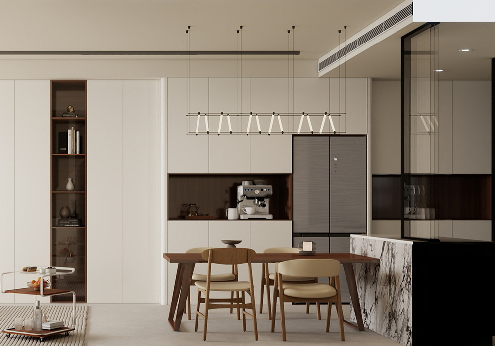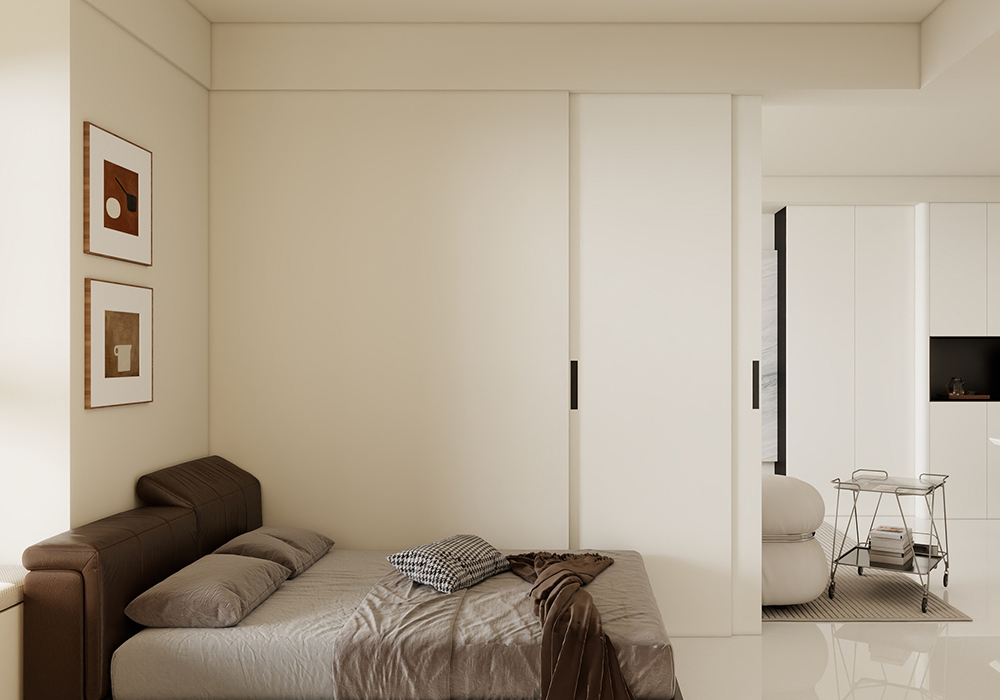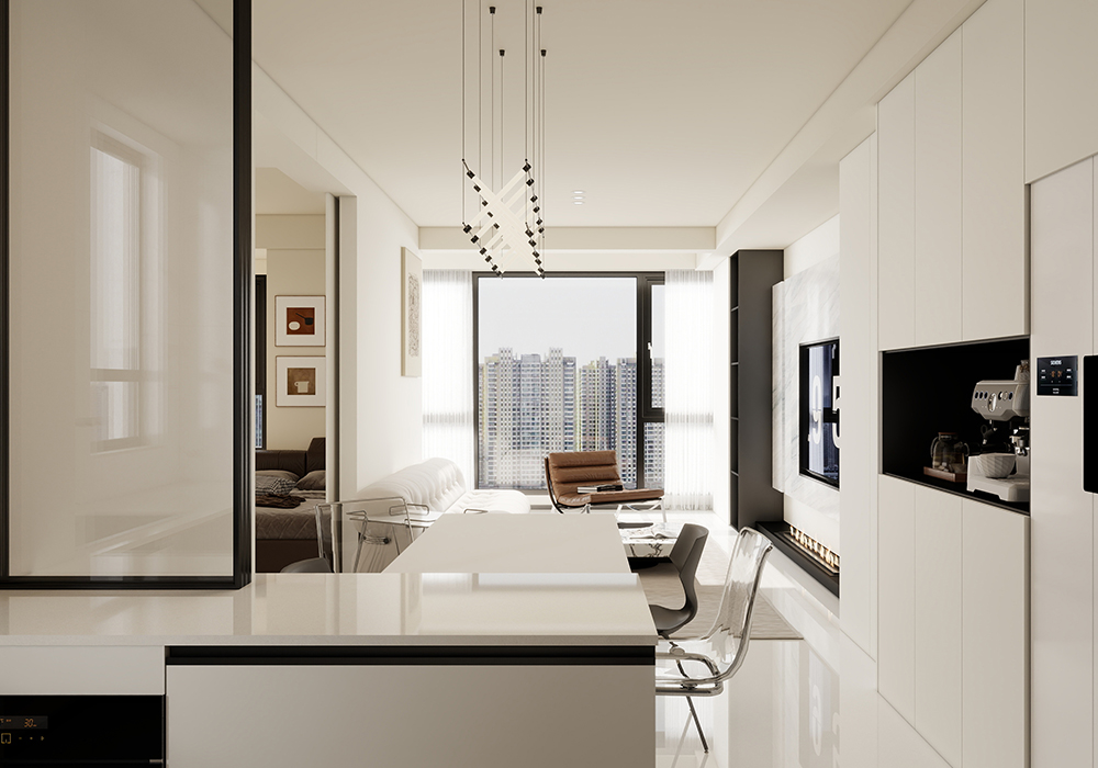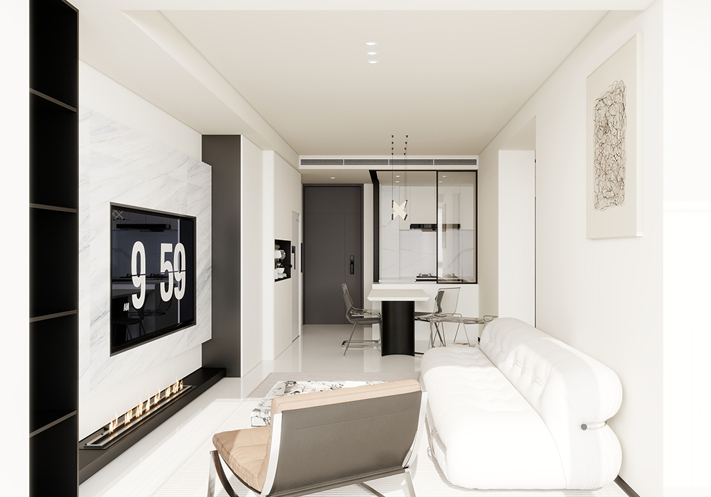 在家具配置上,白亮光系列家具,独特的光泽使家具倍感时尚,具有舒适与美观并存的享受。在配饰上,延续了黑白灰的主色调,以简洁的造型、完美的细节,营造出时尚前卫的感觉。